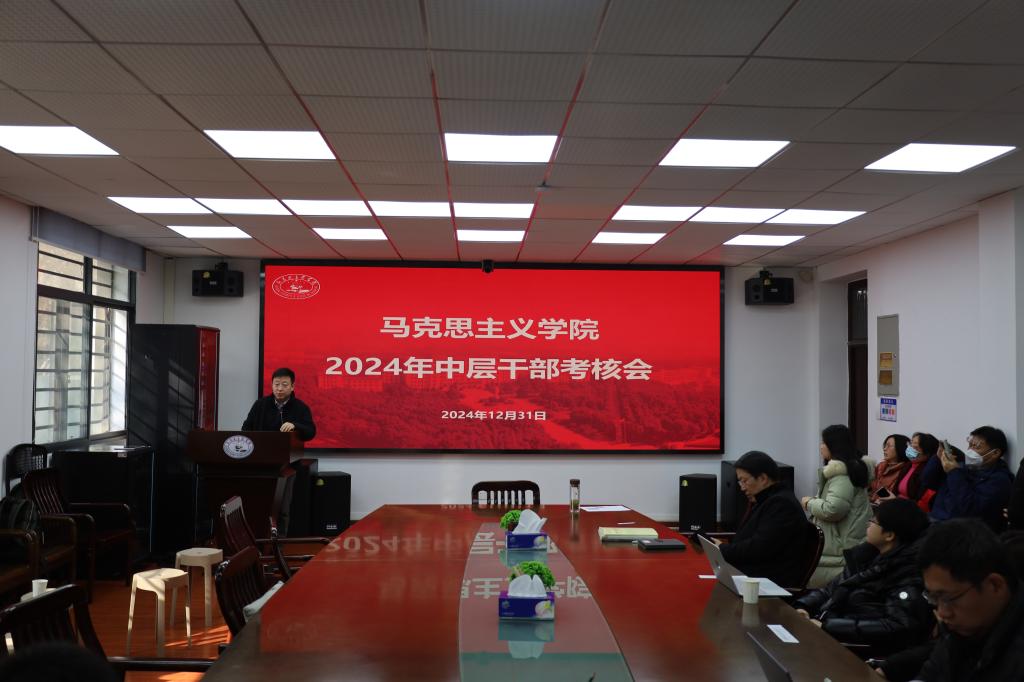 (通讯员:刘宛婷)12月31日上午,华中科技大学马克思主义学院2024年中层干部考核会在东七楼203会议室顺利召开。华中科技大学马克思主义学院院长岳奎,党委副书记、副院长王明飞,副院长谭亚莉、李建国、沈昊驹,华中科技大学马克思主义研究院副院长梁浩伟以及学院全体教职工参加会议,会议由院党委书记王学东主持。