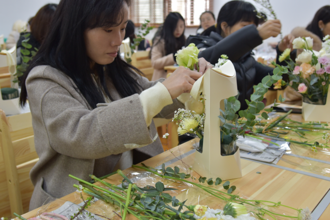 3月8日下午2时30分,我院妇女节花艺沙龙活动在学院207会议室举行。本次活动由欧亚昆老师主持,学院党委书记李小红、多位女性教师以及花艺老师出席活动。此次活动旨在传达学院对全体女教师的节日问候,丰富教师的课余生活,增强团体凝聚力。