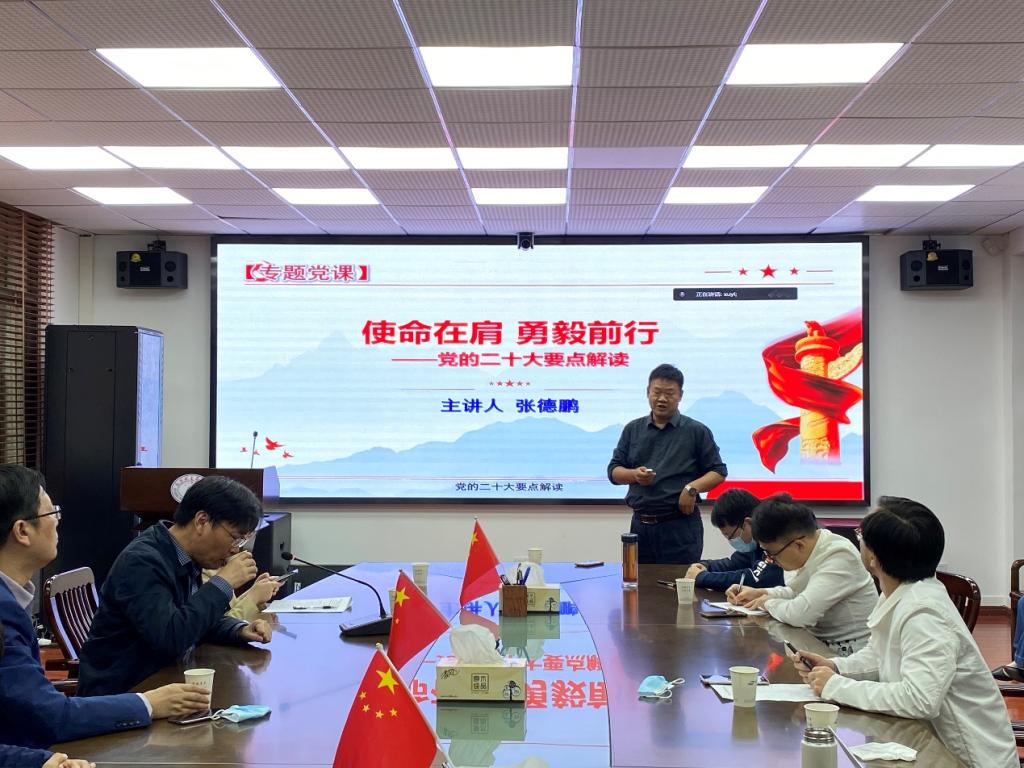2022年10月26日下午两点,“纲要”教研室“党的二十大精神融入纲要课教学”集体备课会在东七楼203会议室举行,张德鹏作“使命在肩 勇毅前行—党的二十大要点解读”报告。备课会由教研室主任夏增民主持。