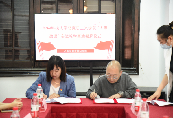 (通讯员:郑洁)为深入贯彻落实习近平总书记关于“大思政课”的重要批示精神,加快构建“大思政课”工作格局。5月25日上午,华中科技大学马克思主义学院与武汉中共中央机关旧址纪念馆、八七会议会址纪念馆举行合作共建“大思政课”实践教学基地签约暨揭牌仪式。学院党委书记刘雅然,中国近代史纲要教研室主任夏增民,团委书记、研究生辅导员王茜以及中国近代史纲要教研室部分教师和学生代表出席本次签约揭牌仪式。