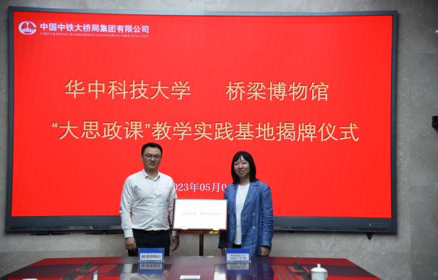 5月4日下午,我院与武汉市桥梁博物馆“大思政课”教学实践基地揭牌仪式在中国中铁大桥局集团有限公司举行。我院党委书记刘雅然,副院长沈昊驹,副教授周浪,中铁大桥局党校机关党工委书记、管理研究院常务副院长刘洪程,桥梁博物馆馆长成莉玲等出席仪式。仪式由中铁大桥局党委宣传部部长、武汉桥梁传媒有限公司总经理舒智明主持。