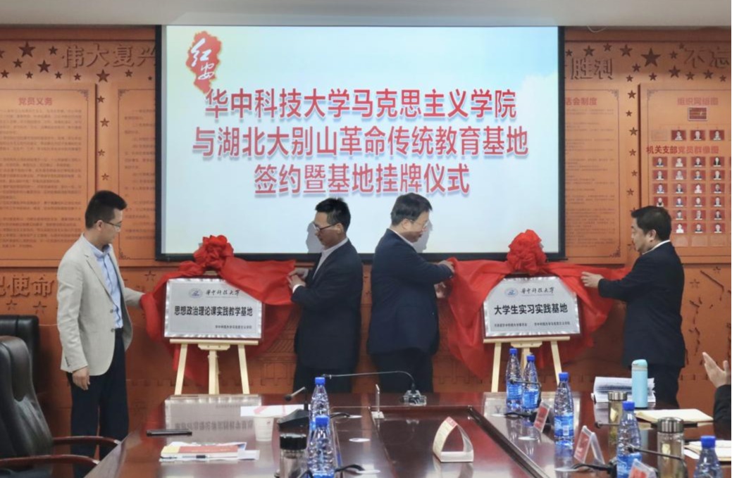 上午,双方于湖北大别山革命传统教育基地进行了座谈,就合作共建、资源共建、信息共享等事项达成共识,并举行“思想政治理论课实践教学基地”和“大学生实习实践基地”挂牌仪式。