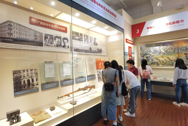 武汉中共中央机关旧址是此次红色实践活动的第三站,这里曾是中国共产党的“心脏”,党中央曾在此作出许多重大决策。走进这幢小楼,沿着蜿蜒的实木楼梯拾级而上,中国共产党的早期革命活动和数次艰难抉择都清晰映现。复原后的中共中央政治局常委会会议室和中央秘书厅办公室为大家展开了巨幅风起云涌、危机四伏的历史画卷,革命先烈们血染荆楚大地,英勇地投身于实现国家独立和民族复兴的伟大事业。